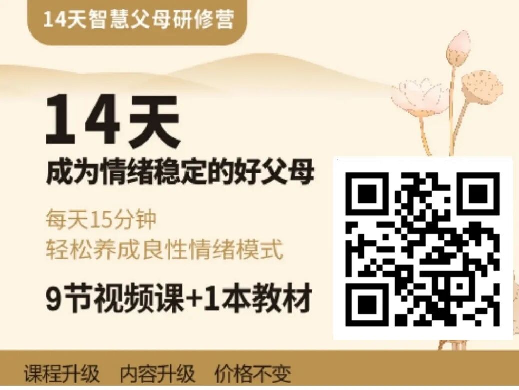 妈妈的育儿理念,是孩子未来幸福的“风水”消除亲子关系中的内耗,从《14天智慧父母研修营》开始!扫描下方二维码即可购买 原价39.9元 ,今晚(7月13日)24:00前拼团立减10元!只需29.9元,拥有“随叫随到”的育儿专家!。