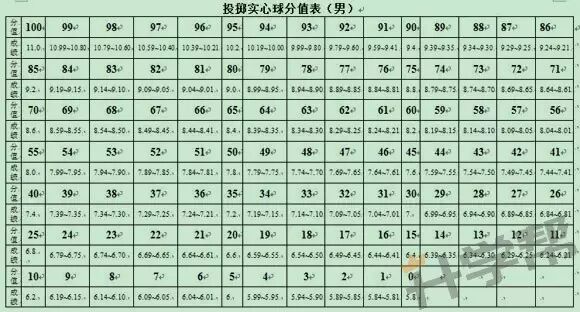 3.重庆中考体育实心球评分标准