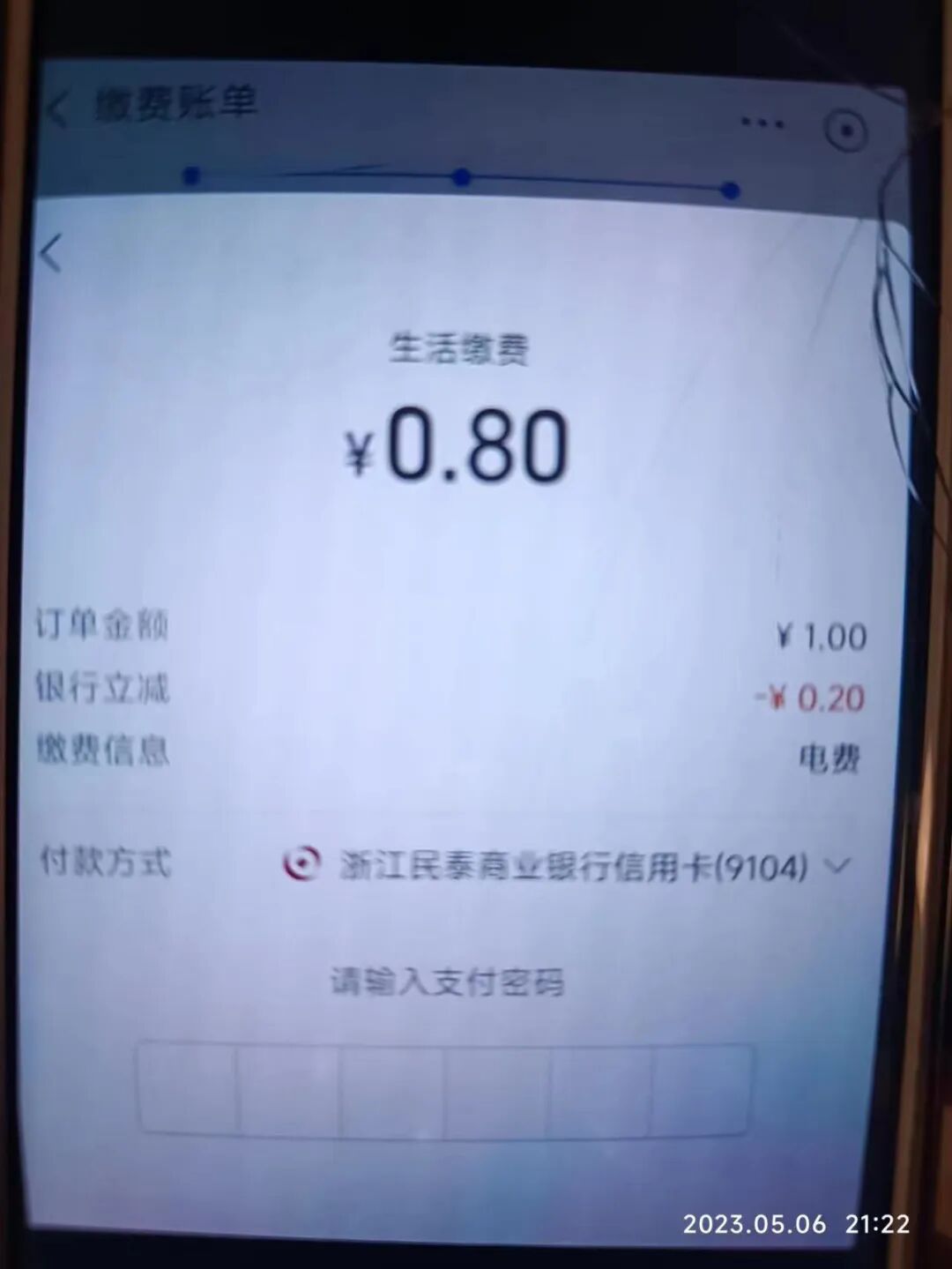 2、每天通过微信支付2笔5元以上,达标即可领取相应的奖金,活动从参与开始30天内有效; 3、8-9折水电燃气费,打开支付宝-生活缴费-输入你家的缴费账号,每次交1块钱,选民泰银行支付,基本上优惠都在8-9折之间,一个缴费账号每天最多可以冲10次,本来我开电动车已经很省了,从一个月油费1800变成电费120,现在充值再打个折,更开心了;