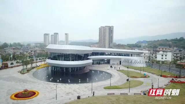张家界游客中心2022年9月中旬,项目建造完成并以“大鲵之姿”与全国各地的游客见面。东游客中心用地面积9838.51㎡,停车场面积约6500㎡,建筑面积2685.1㎡。